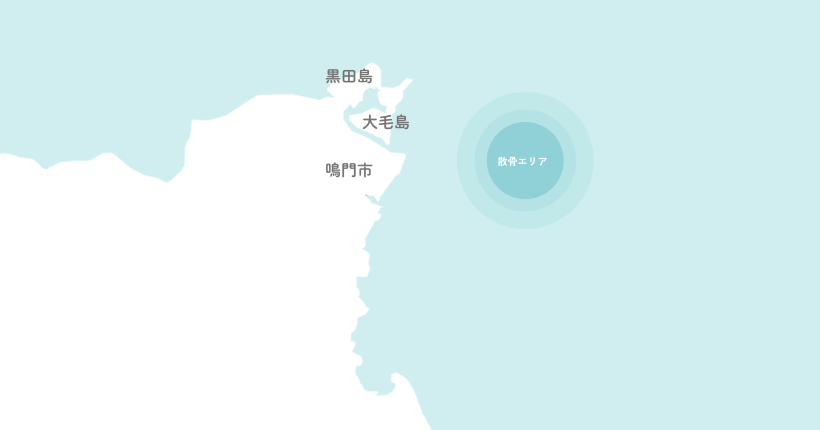 徳島市の沖合が散骨エリアとなりますので、やさしい潮流に包まれた紀伊水道へと故人様をお還ししていただけます。