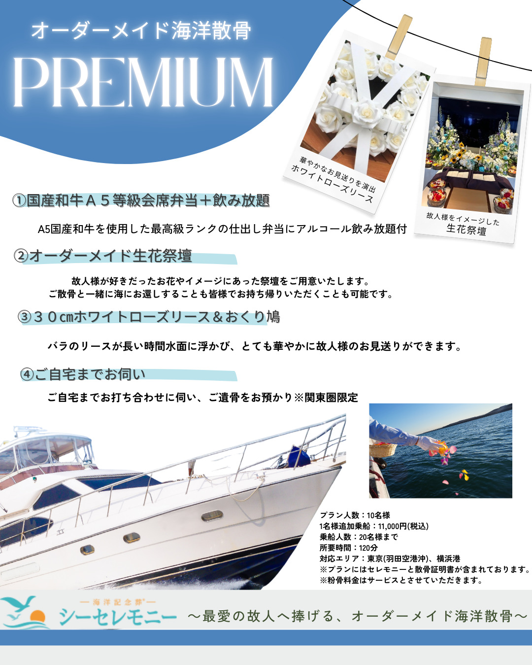 シーセレモニーが提案するワンランク上のプレミアム散骨プランです。